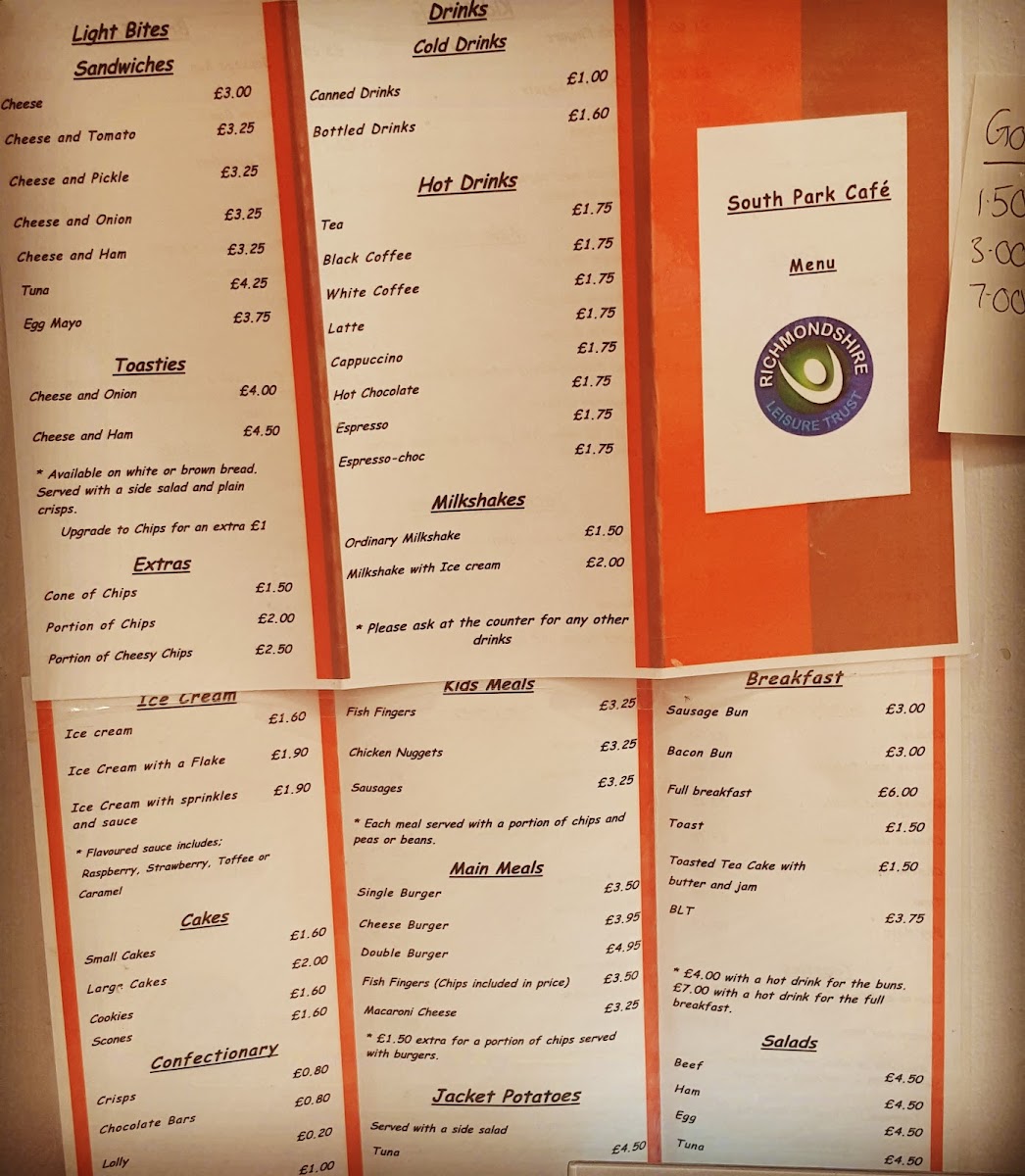 The South Park Cafe Menu at South Park, Darlington DL1 5TG, United Kingdom, offers a charming blend of traditional café staples and comforting homemade dishes, making it a well-loved stop for both locals and park visitors. Having had the opportunity to experience it firsthand, I found the menu thoughtfully designed to balance light snacks, hearty meals, and family-friendly options.